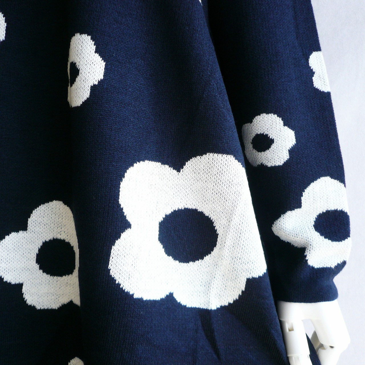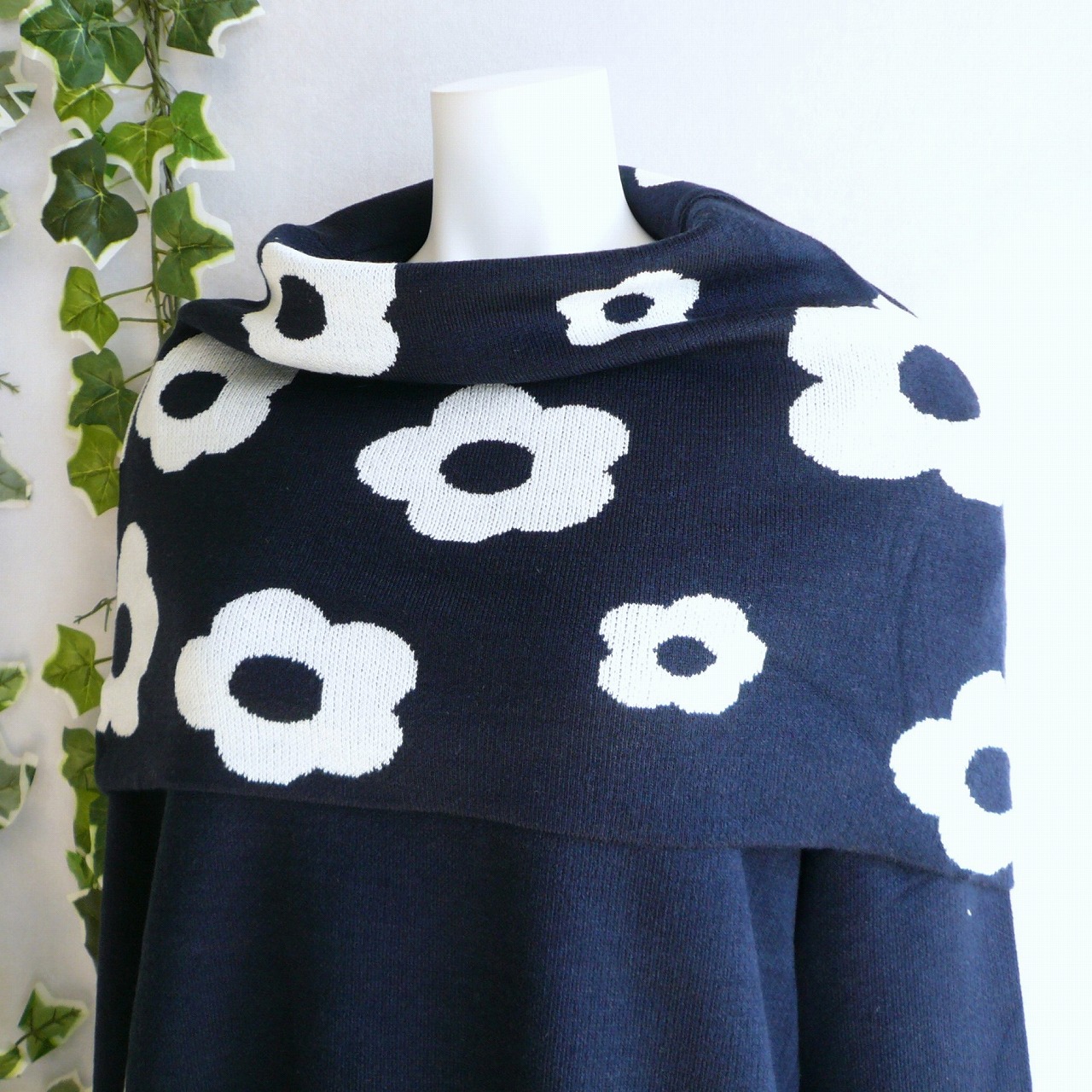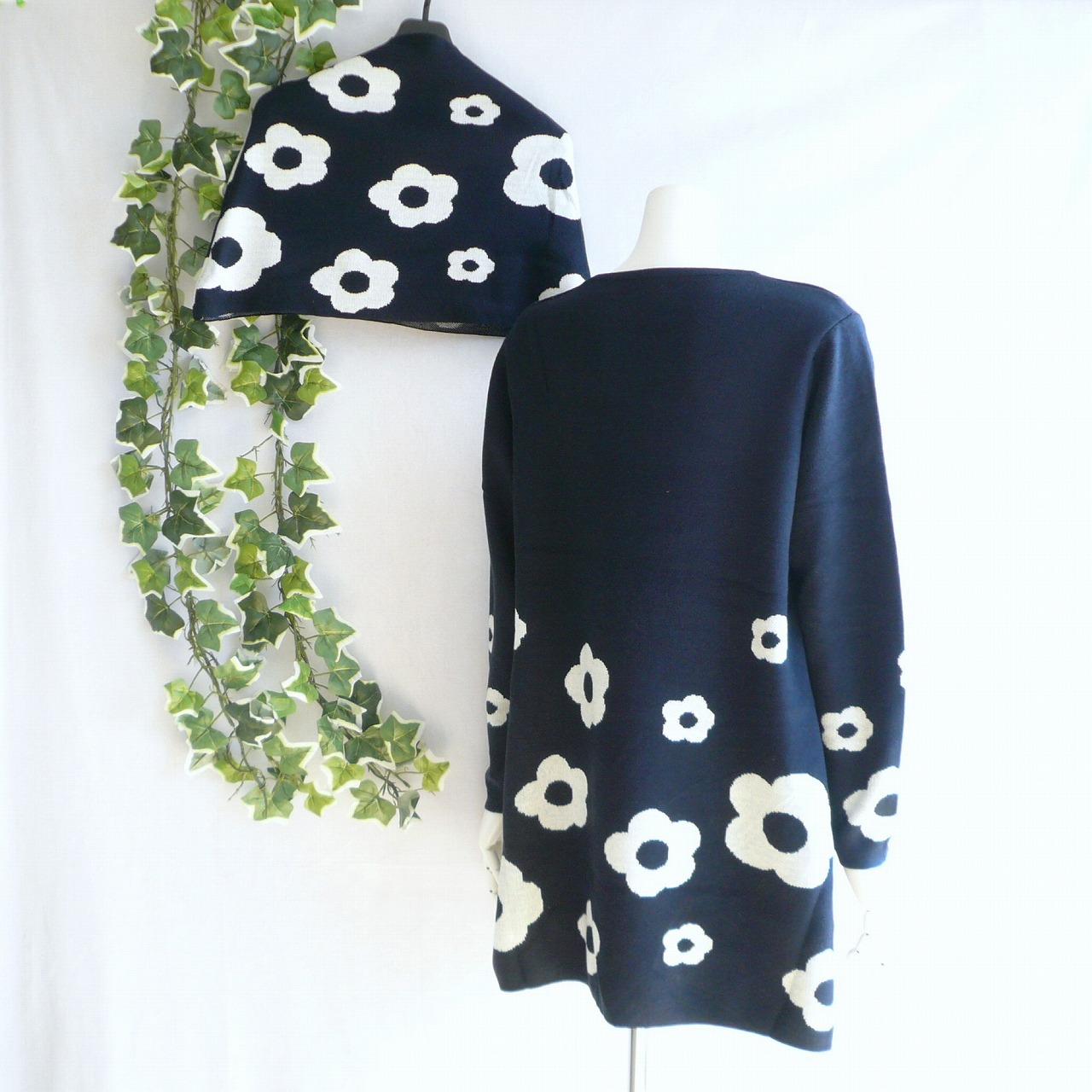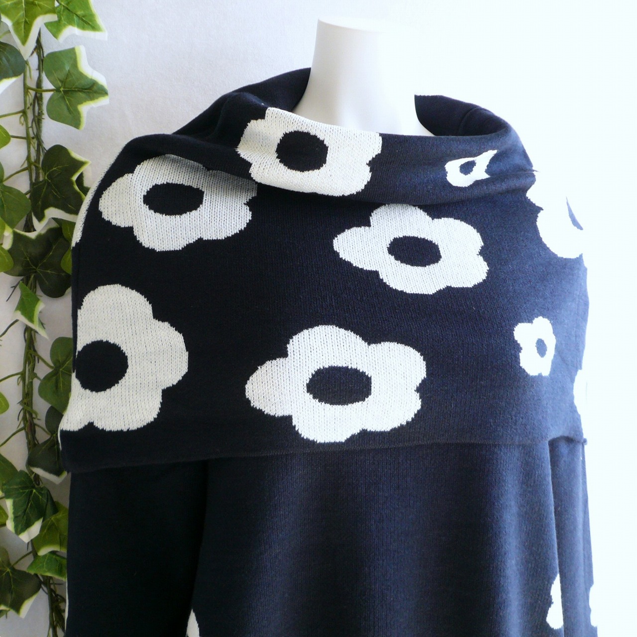 新品 9900 ML 北欧風花柄 ニット チュニック ワンピース 紺系 秋 冬 共ニットスヌード レディース 上品 50代 60代 70代