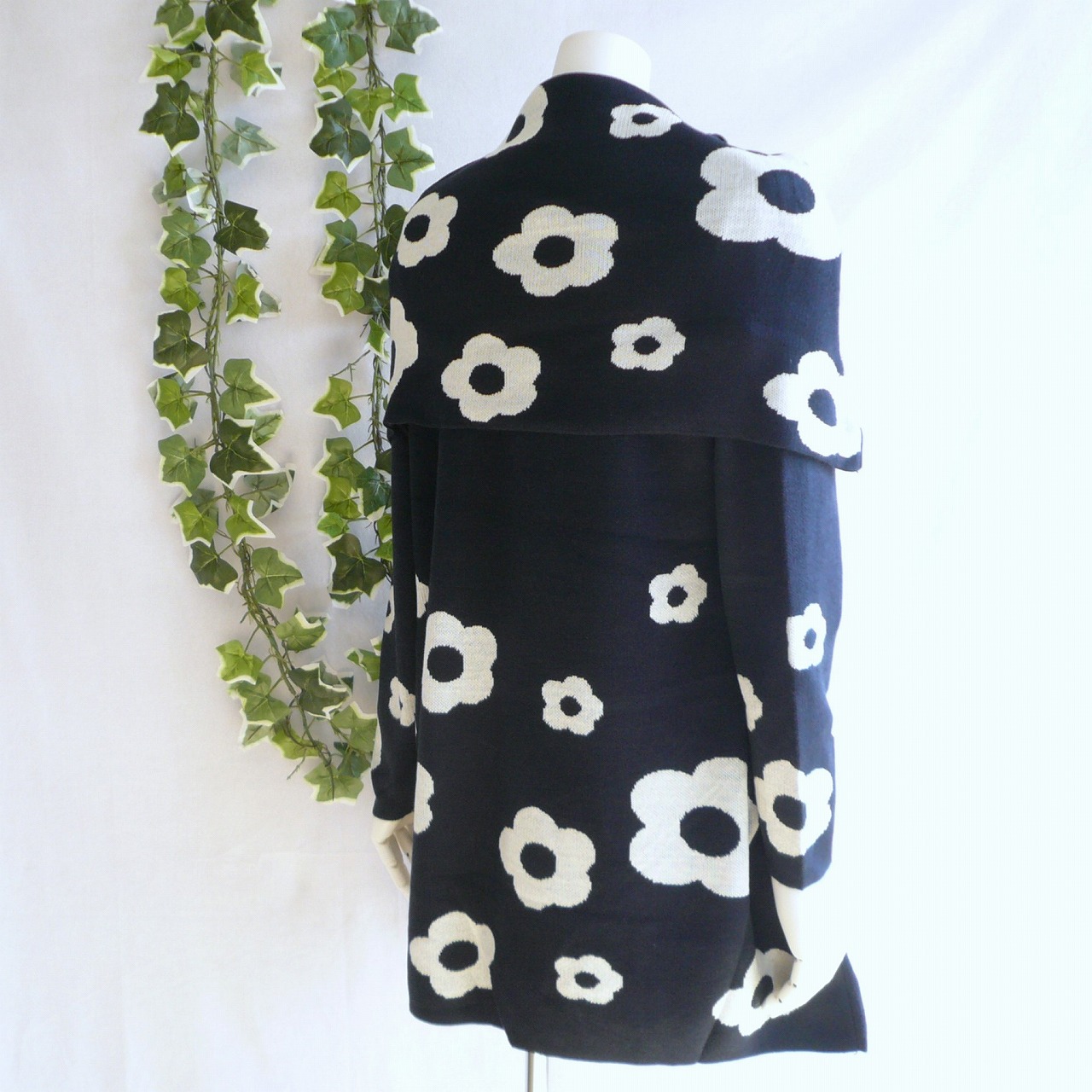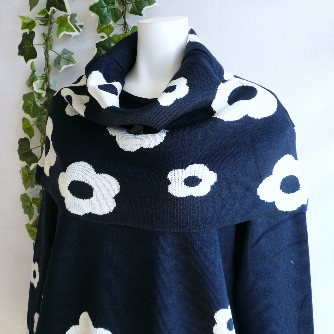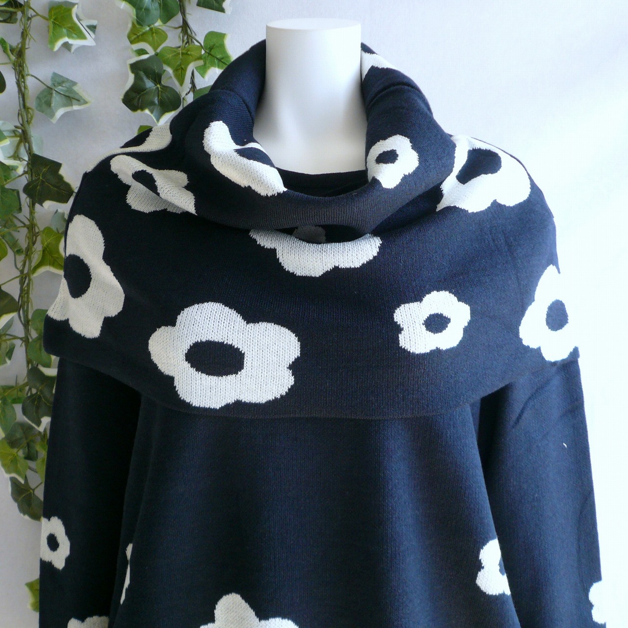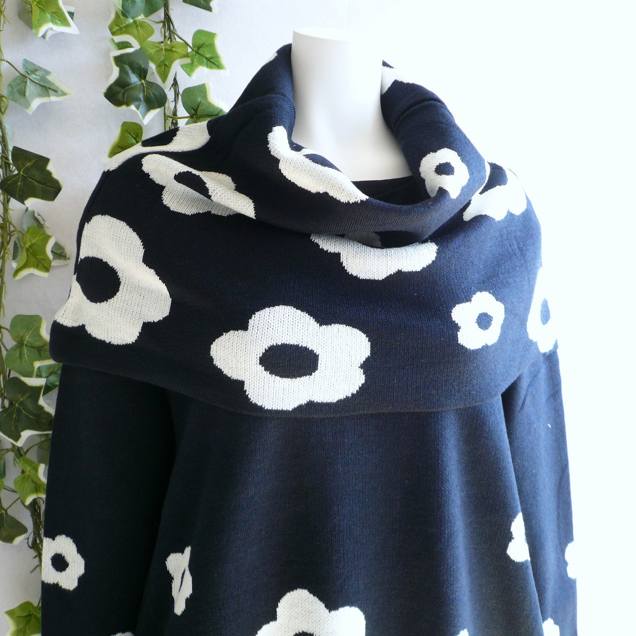 新品 9900 ML 北欧風花柄 ニット チュニック ワンピース 紺系 秋 冬 共ニットスヌード レディース 上品 50代 60代 70代