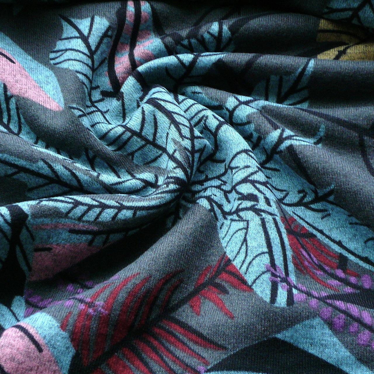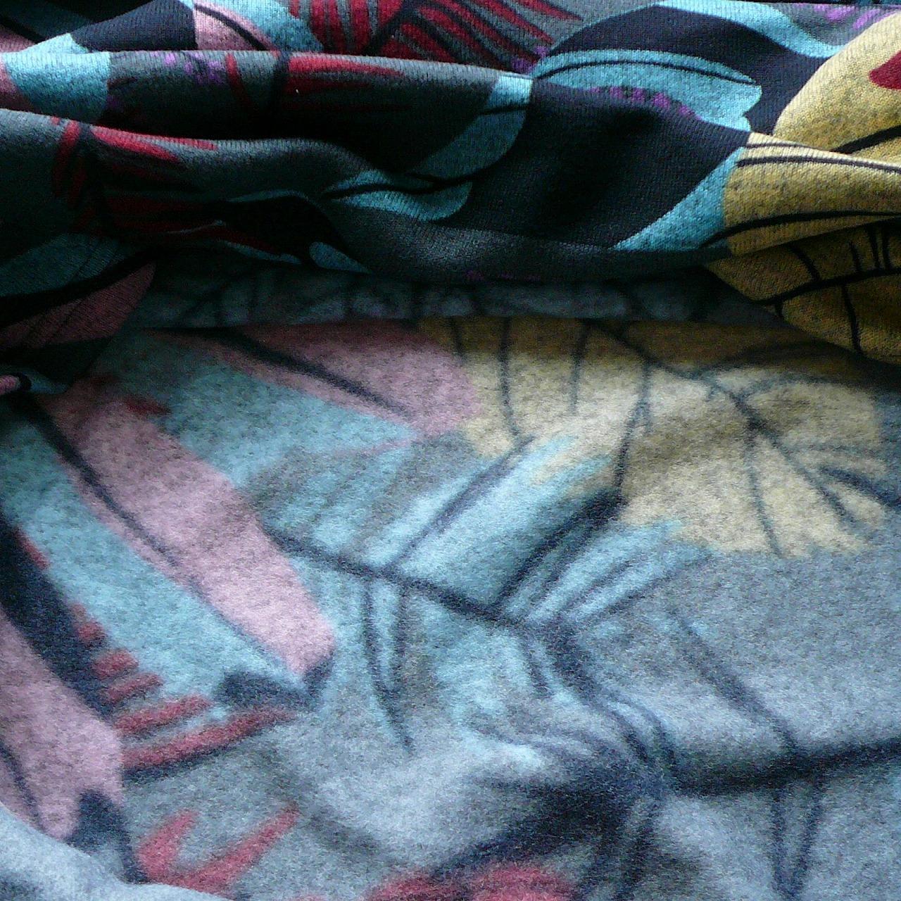大きなボタニカル柄が印象的な裏起毛のニットソーワンピースです。