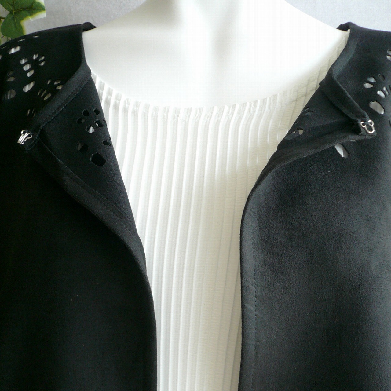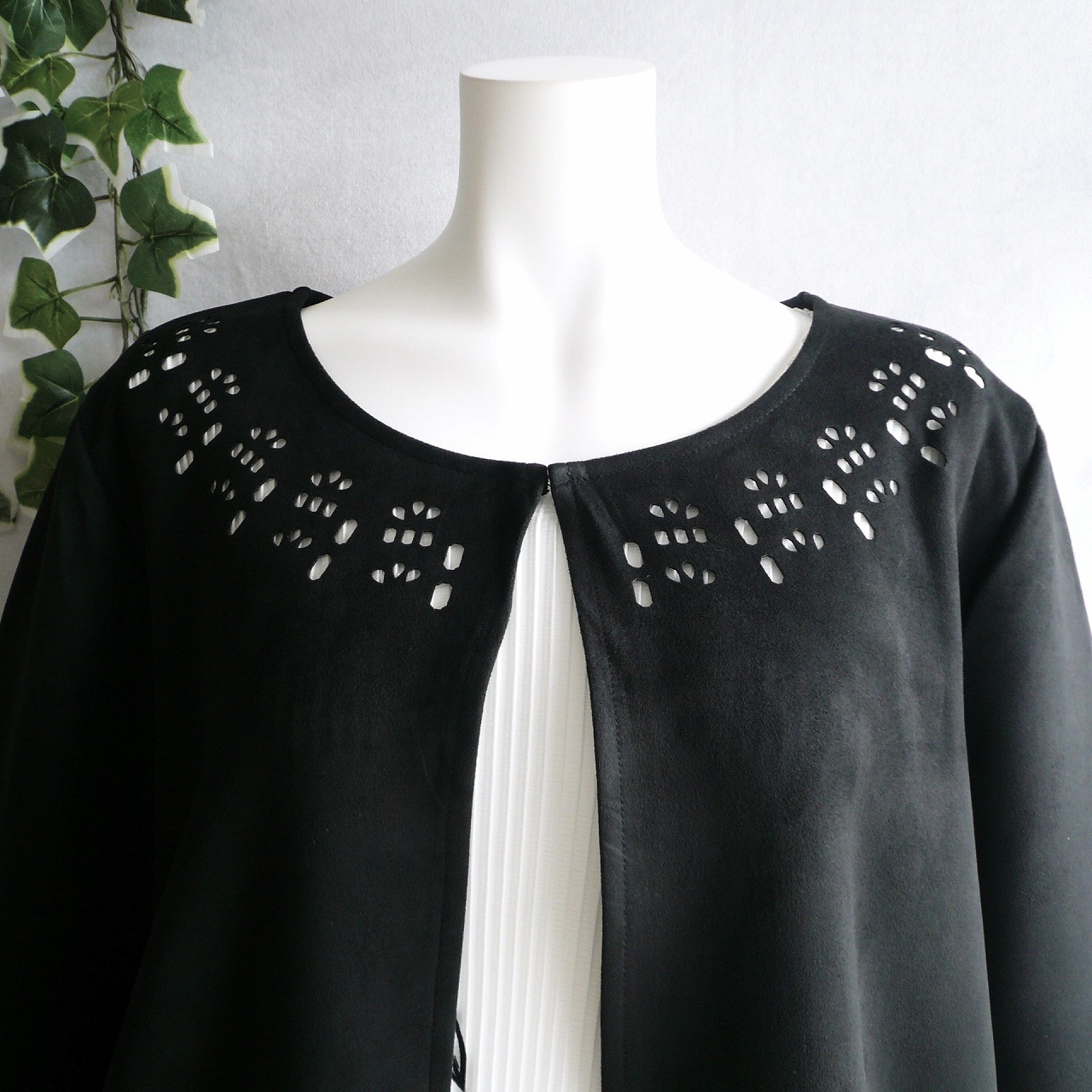 新品 9903 ML パンチング スエード調 ジャケット 黒 秋 冬 レディース カットワーク フェイクスエード 上品 50代 60代 70代