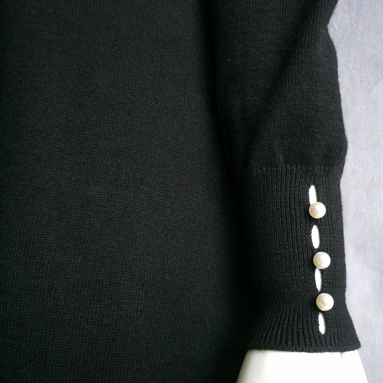 新品 9884 ML パール付き フリル ハイネック ニット チュニック ワンピース 黒系 秋 冬 レディース コクーン 上品 50代 60代 70代