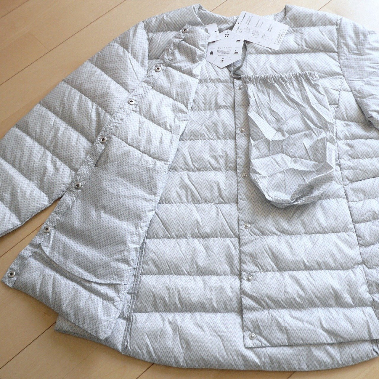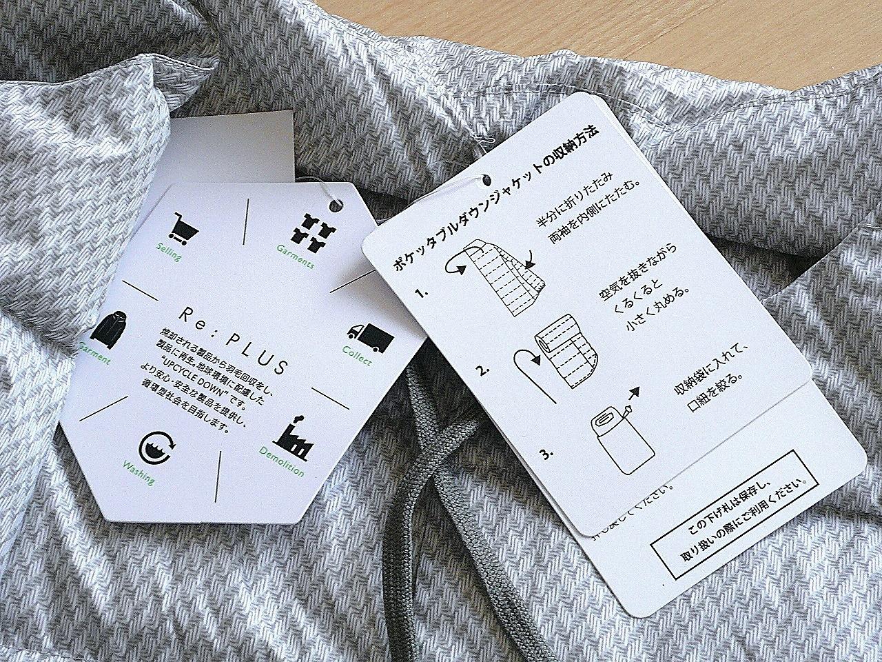 ダウン90%・フェザー10%の「Re:PLUS」の「UPCYCLE DOWN」を使用し、環境に配慮した仕上がりに。