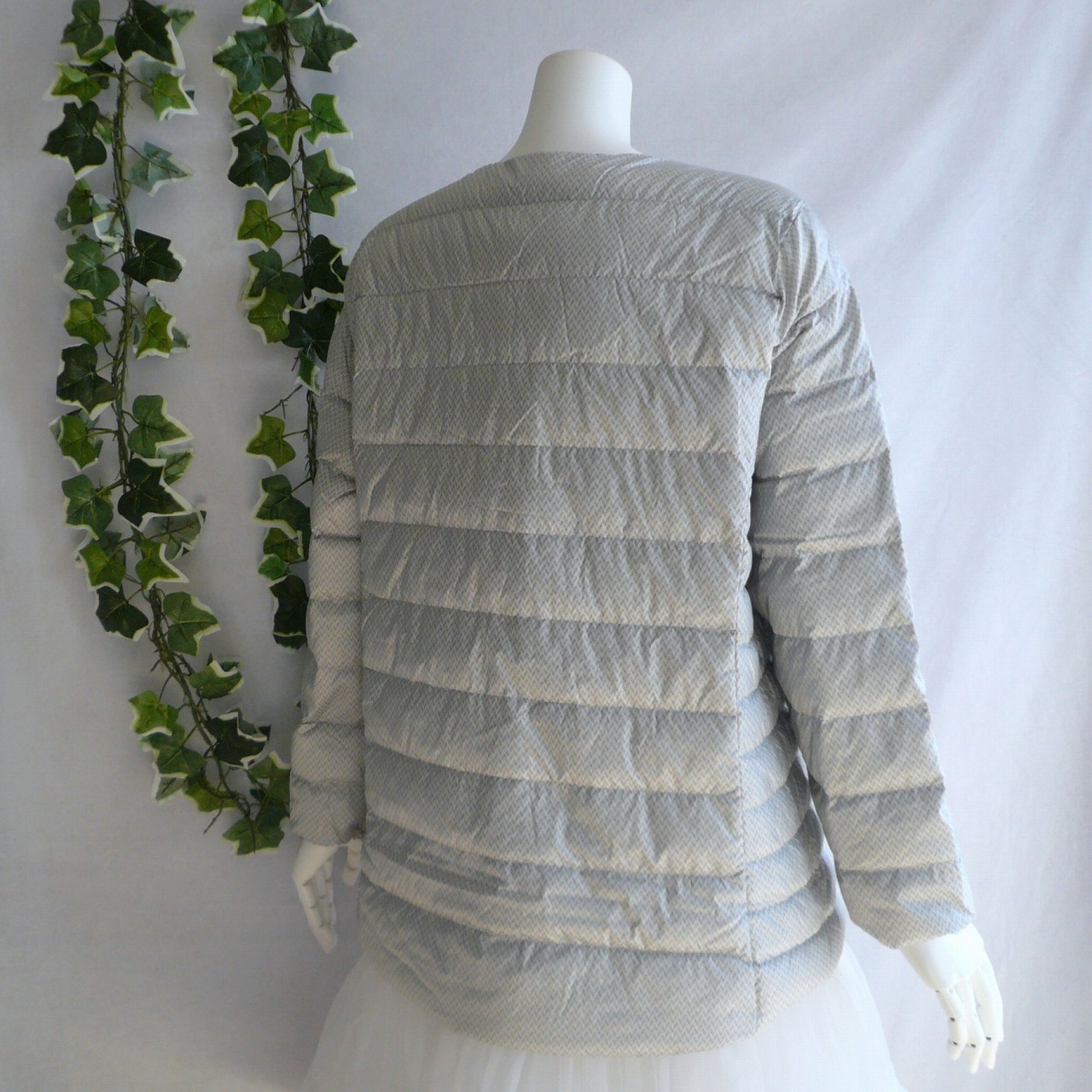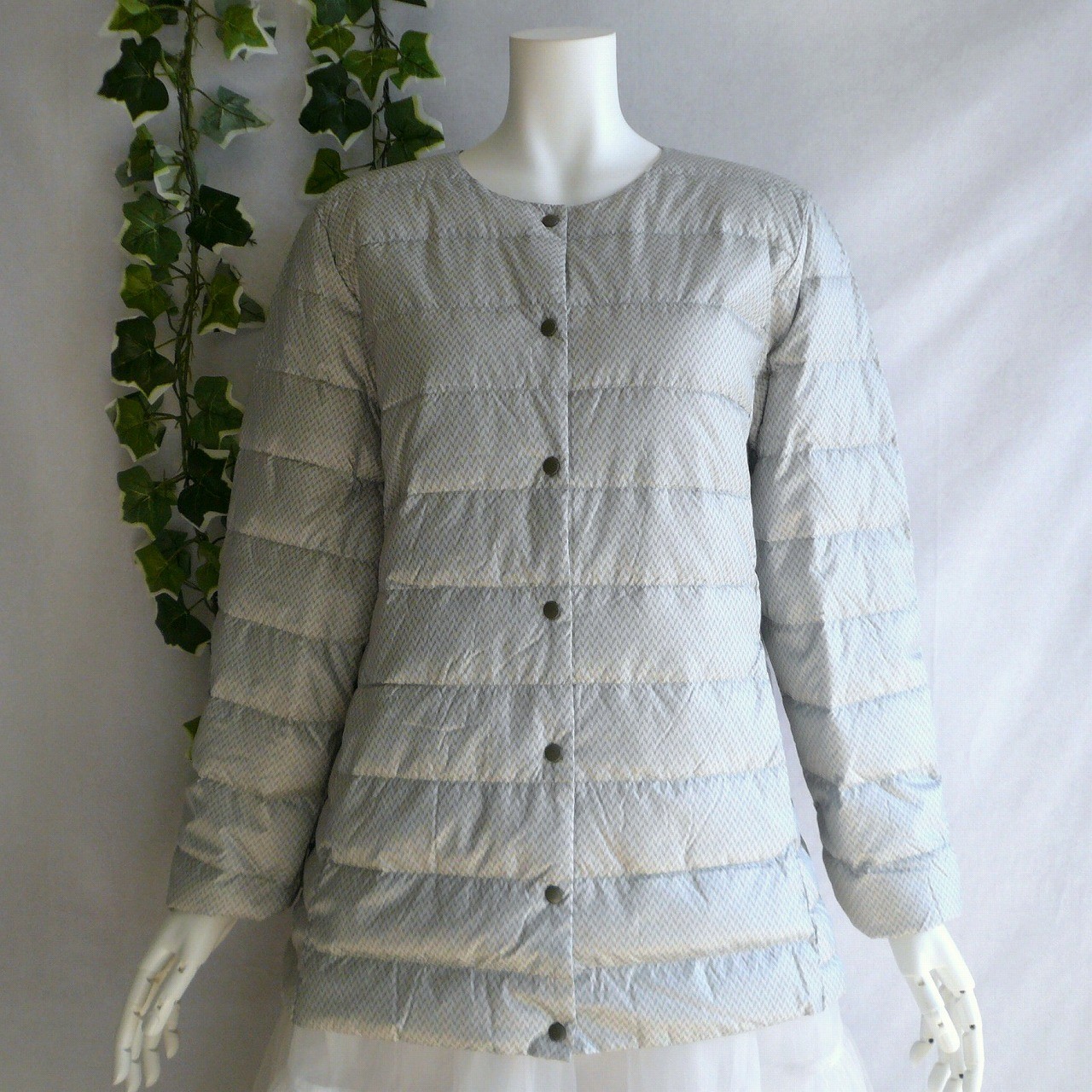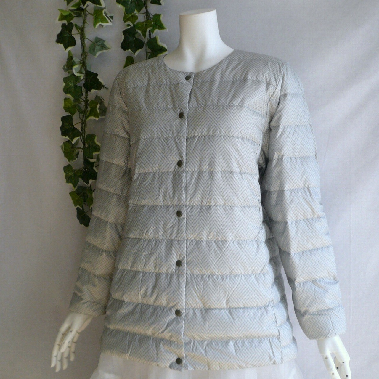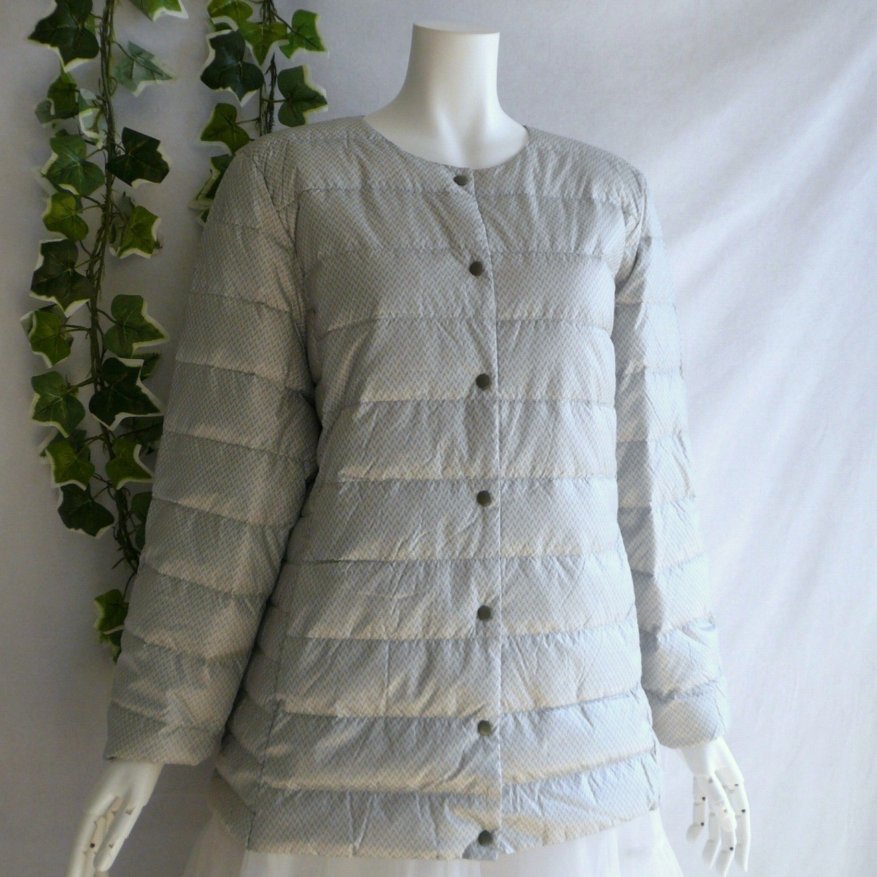 新品 9891 LL ダウン90% ダウンジャケット ヘリンボーン 秋 冬 レディース ポケッタブル UPCYCLE DOWN ノーカラー 50代 60代 70代