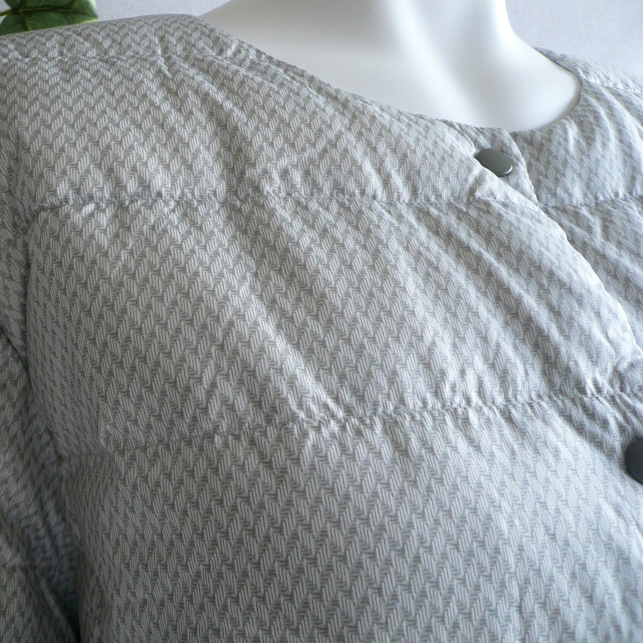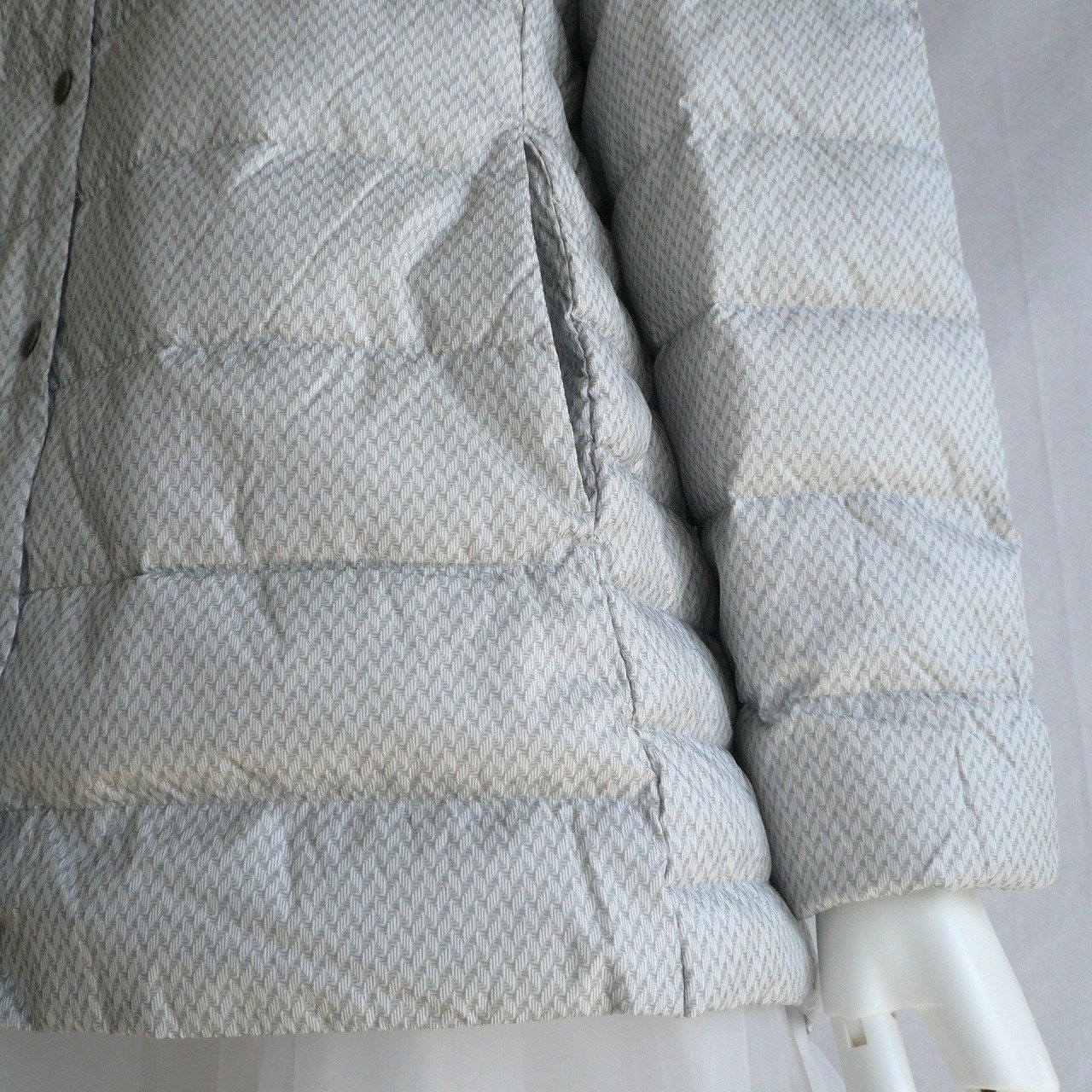 上品なヘリンボーン柄が映える大人のダウンジャケットです。