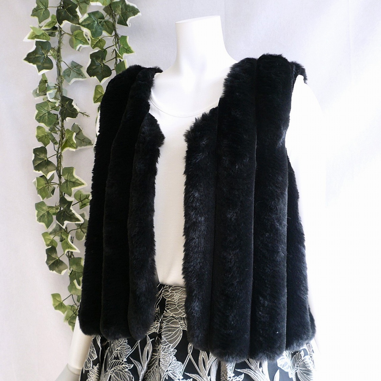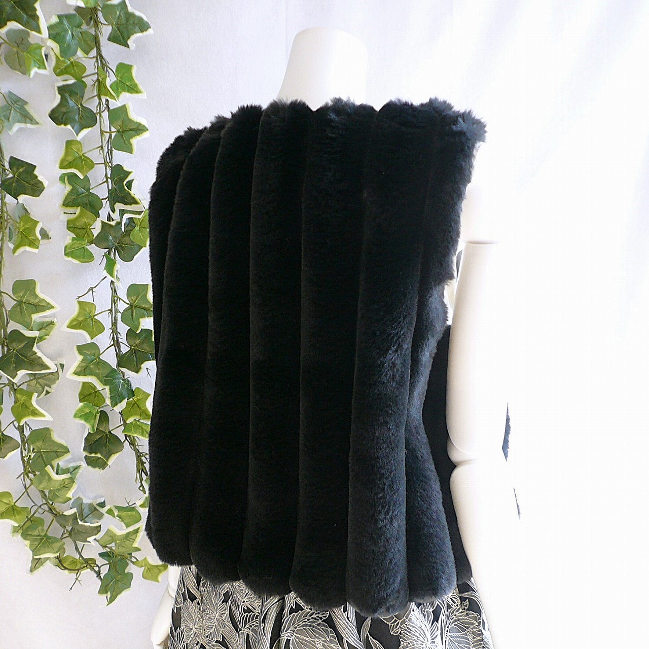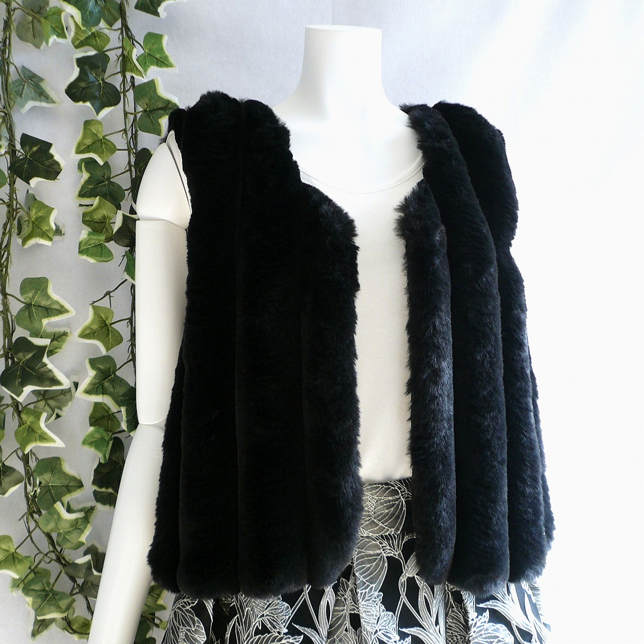 新品 9256 ML 縦ライン ファー ベスト ジレ 黒 秋 冬 レディース フェイクファー エコファー ふんわり 50代 60代 70代
