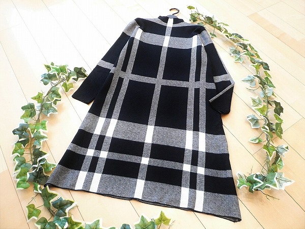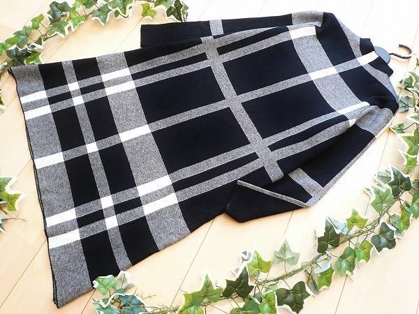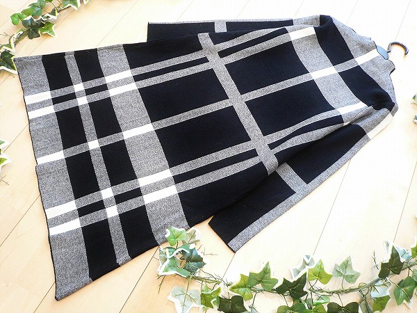 新品 9920 ML 英国調 チェック ニット ワンピース 黒系 秋 冬 レディース ボトルネック 上質 上品 50代 60代 70代