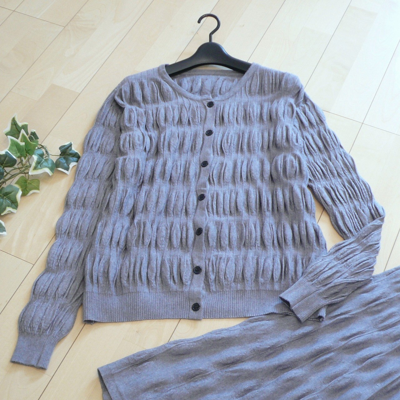新品 9905 ML プリーツ編み ツインニット セットアップ 秋 冬 レディース カーディガン ロングスカート 大人 上品 50代 60代 70代