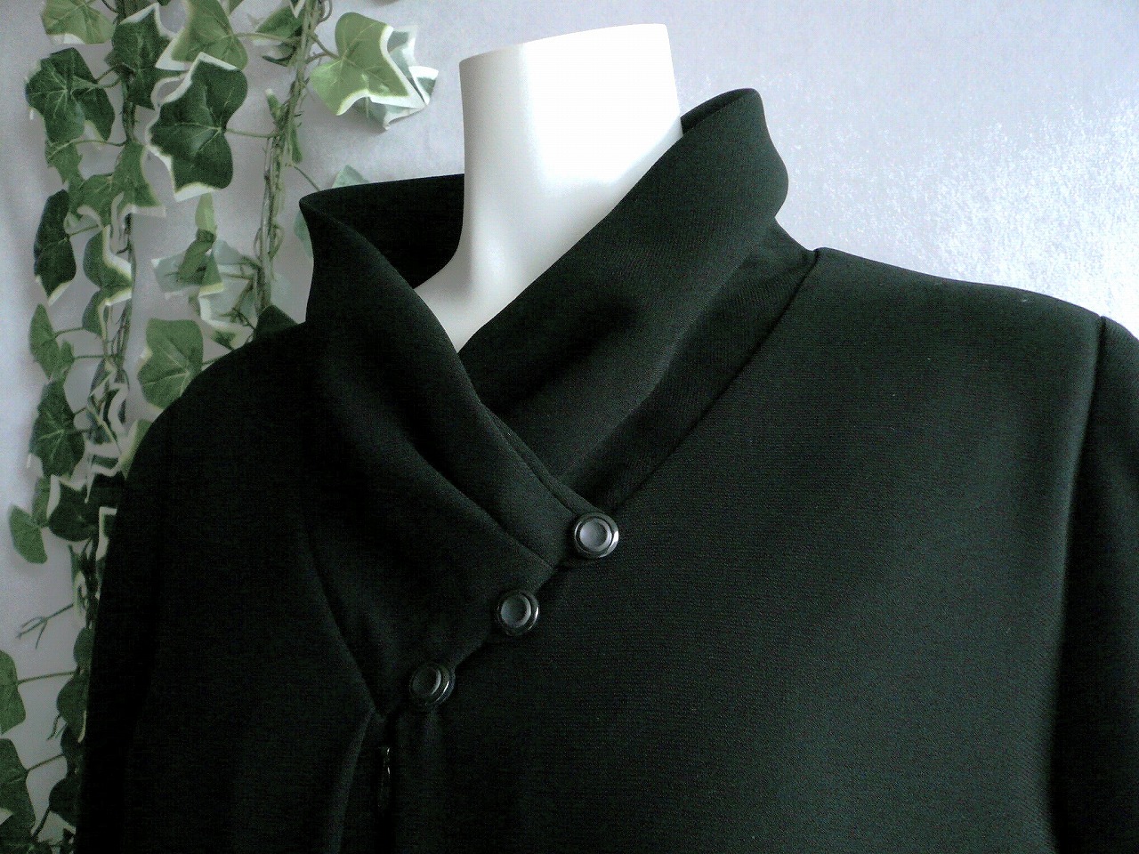 新品 9913 M ブラックフォーマル ワンピース 黒 レディース クロスカラー 斜めボタン フレアスタイル 冠婚葬祭 高級 上質 50代 60代 70代