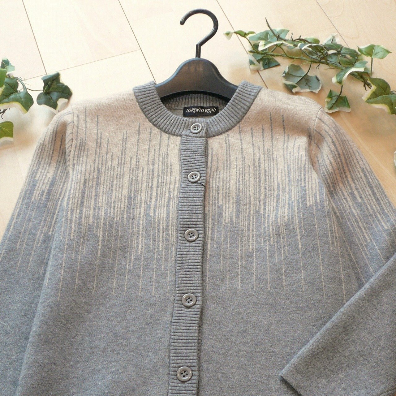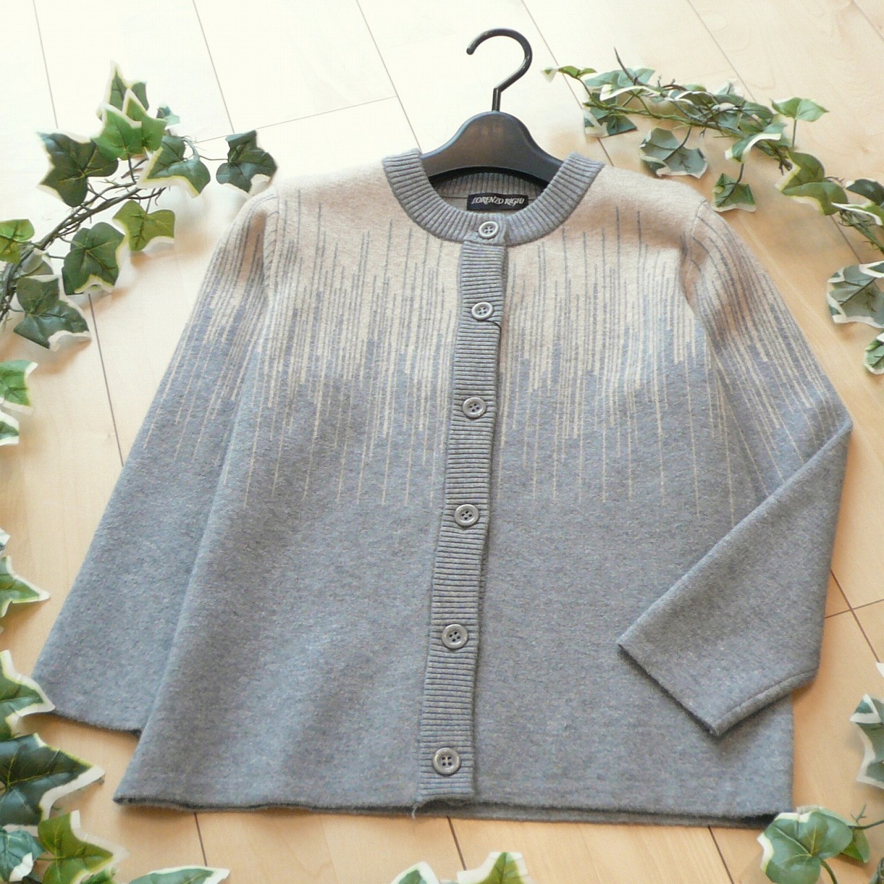 新品 9931 S 和風 枝垂れ柄 ニット カーディガン グレー系 秋 冬 レディース もちもちニット 上質 上品 50代 60代 70代