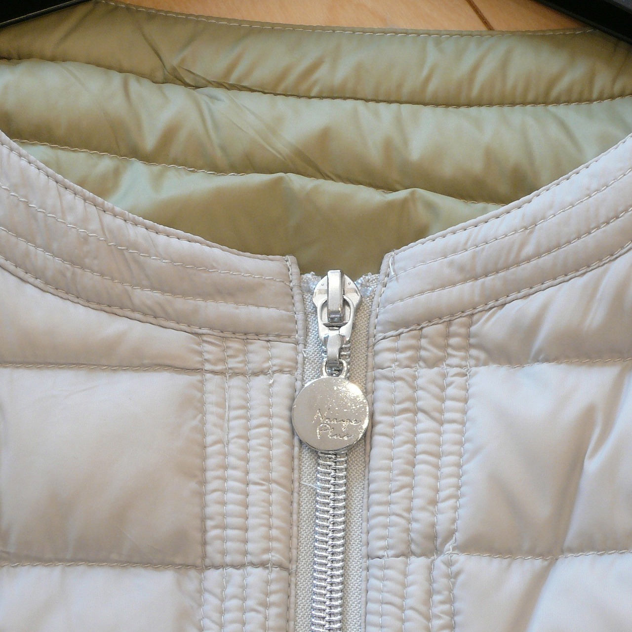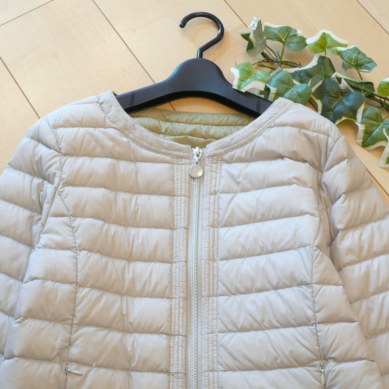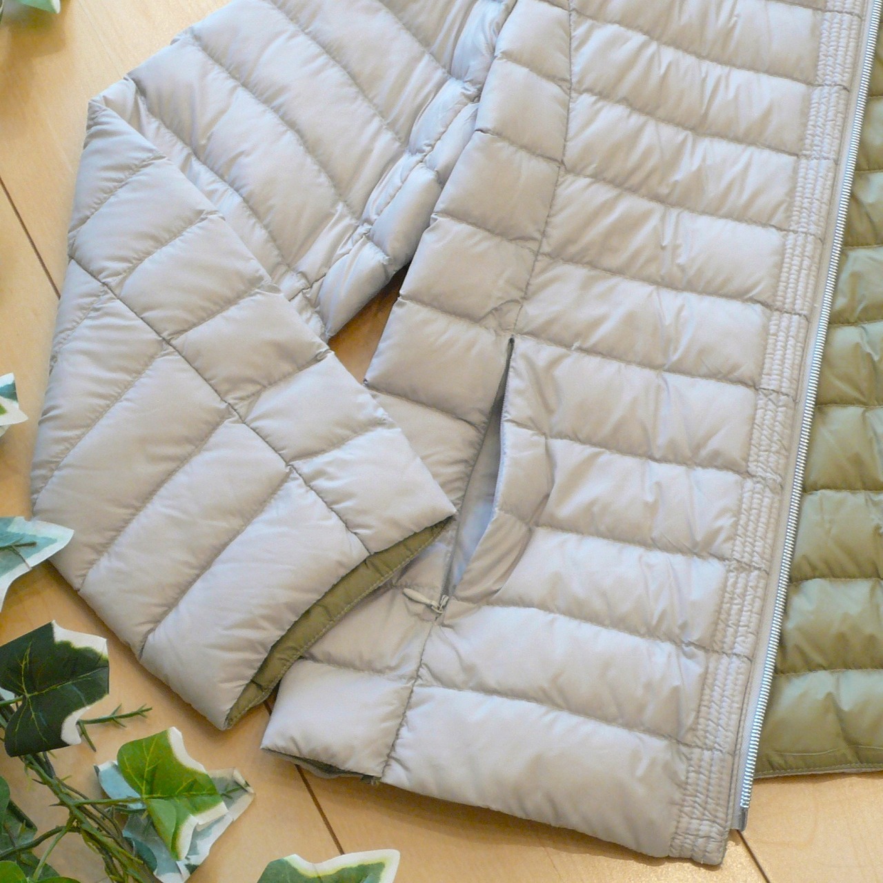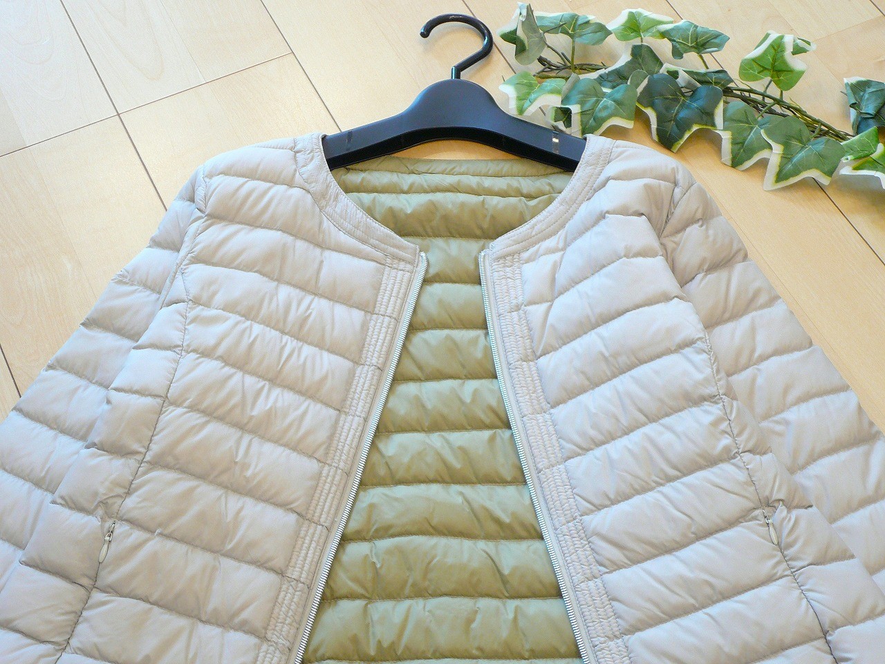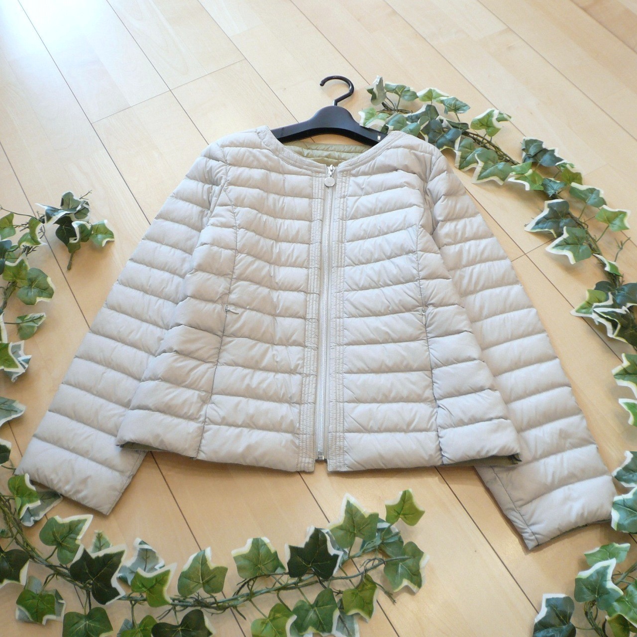 新品 9982 L ダウン80% 撥水加工 ダウンジャケット アイボリーグレー系 秋 冬 レディース 裏配色 ノーカラー ライトダウン