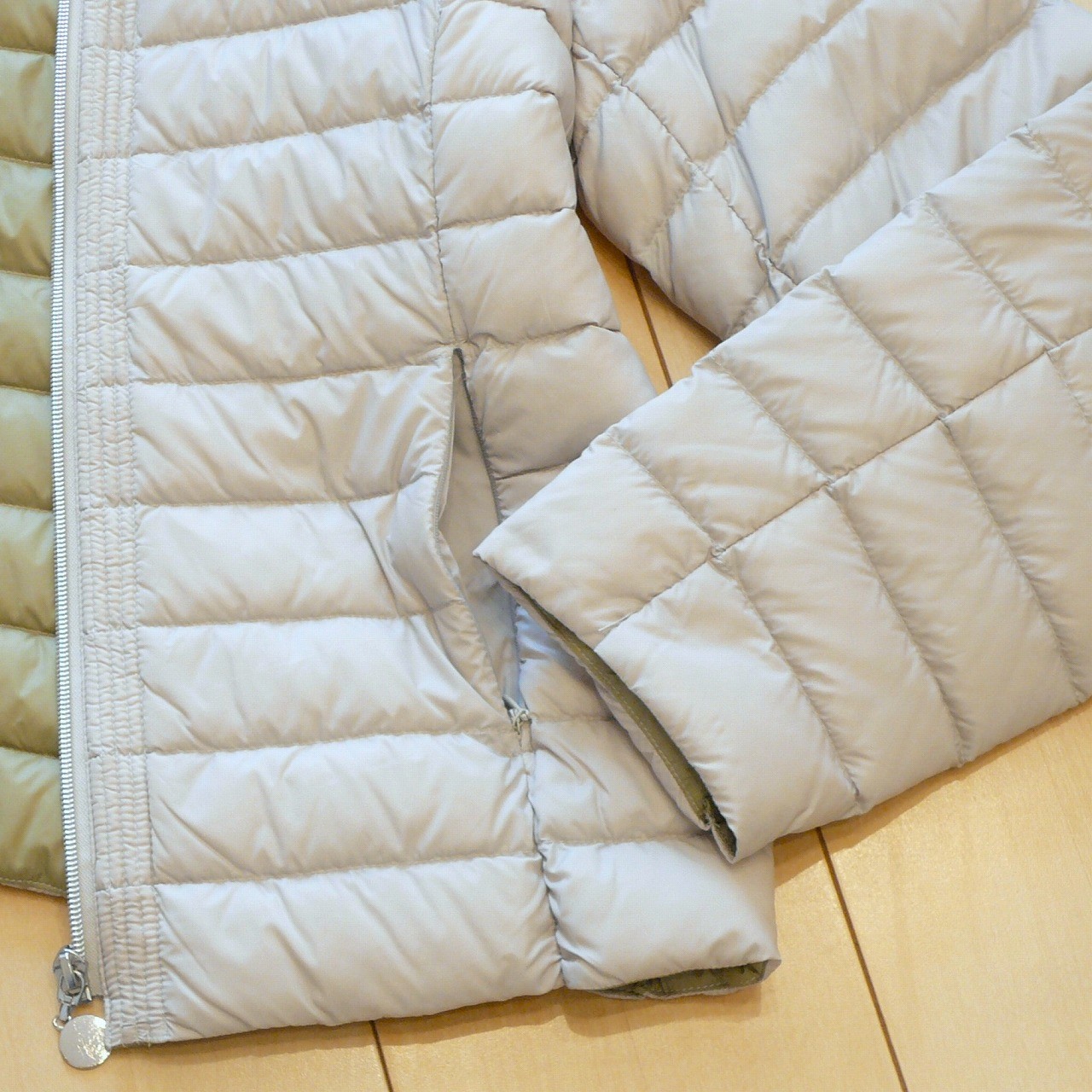 表と裏で色が異なる、スタイリッシュな人気のバイカラーダウンジャケットです。